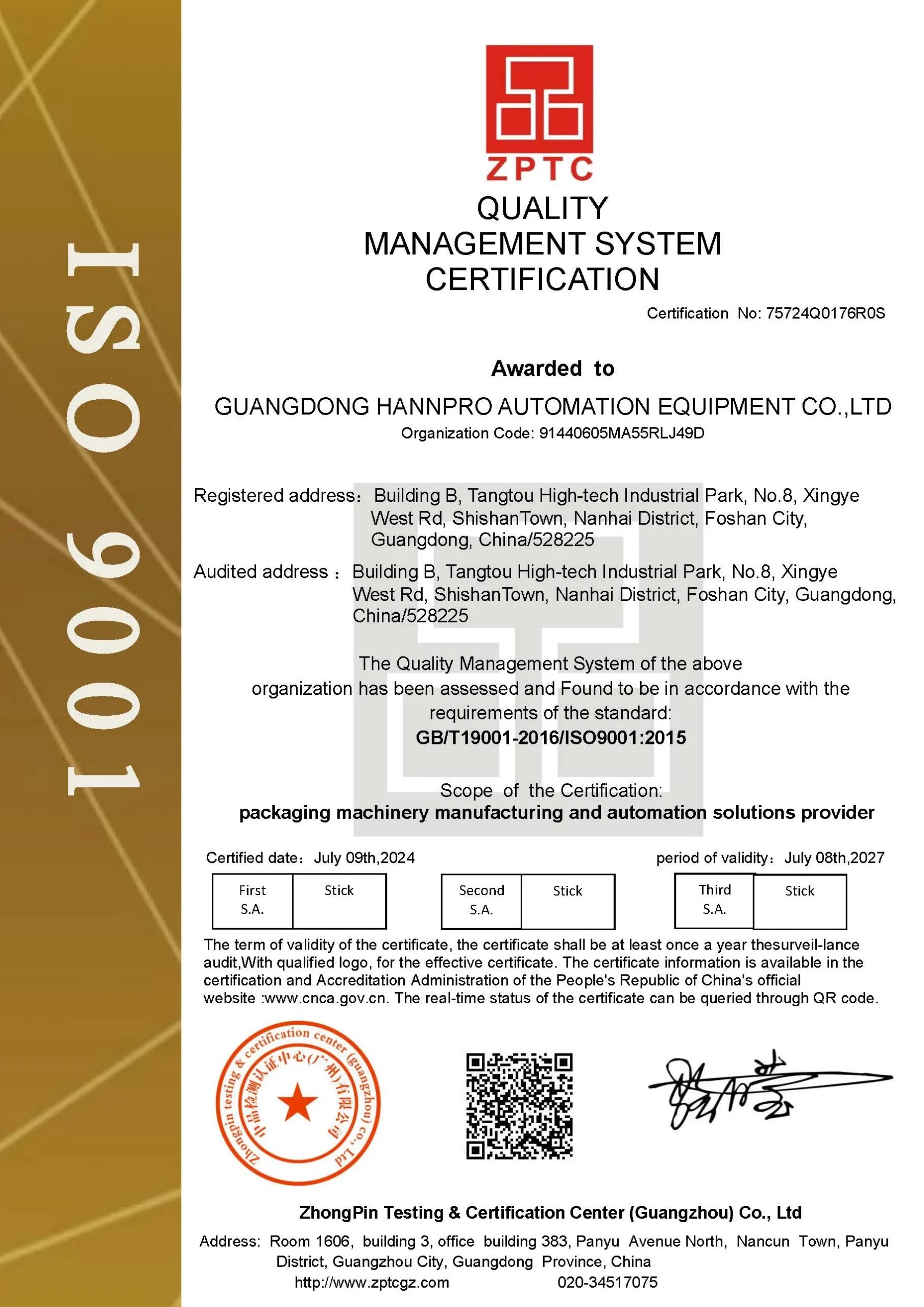 Guangdong Hannpro Automation Equipment Co., Ltd, is your trusted partner in packaging solutions. Based in Foshan, Guangdong, we have been packaging machinery manufacturing since 2011. Our expertise spans a wide range of industries, from food and beverage to cosmetics and pharmaceuticals.